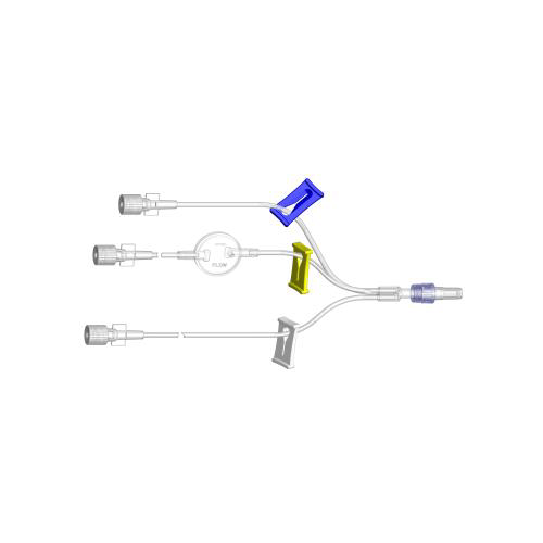 6” Trifurcated Extension Set (0.02″ ID blue clamp, 0.05″ ID yellow/white clamps) with .22µ Filter