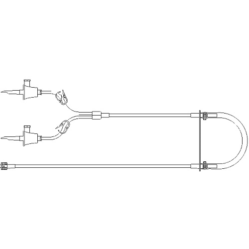 Product carries a male luer lock connector along with contains two (2) bag spikes compatible with most pharmacy applications. Product allows a user to connect to multiple source bags at once.