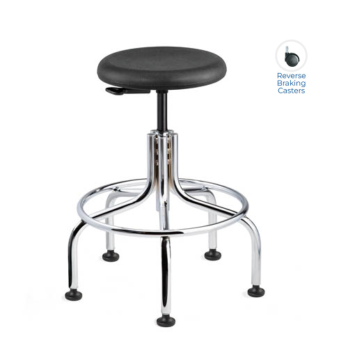 Versa – CR Polyurethane Stool, ISO 4, 22″ Chrome Tubular Steel Base, Reverse Braking Casters, Polyurethane – Black, Seat Height Range 24″ – 29″