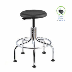 Everlast ISO 4 Cleanroom Black Polyurethane Chair, Non-Tilt, Black Nylon Base, 18″ Adj. Chrome Footring, Reverse Braking Casters, 22″ – 32″ Seat Height Adj., 300lb Weight Capacity, 12yr Warranty