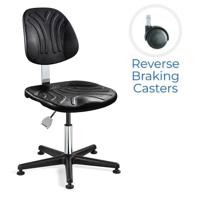Dura Heavy-Duty ISO 5 Cleanroom Black Polyurethane Chair 16″-21″ w/Reverse Braking Casters