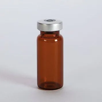 Sterile Empty Vials – Closed Top, FlurotecĀ® 10CC, 20MM, Amber – Silver Cap 25/pk