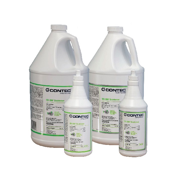 Contec Healthcare TB1-3300 Disinfectant is a blend of quaternary ammonium and ethyl alcohol available in 32 oz. (0.9L) and 1 gallon (3.8L) containers. TB1-3300 Disinfectant is available sterile and non-sterile. It is a ready to use cleaner/disinfectant that generates low residue.