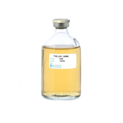 Tryptic Soy Broth (TSB), USP, 100ml fill, 100ml bottle, order by the package of 20, by Hardy Diagnostics